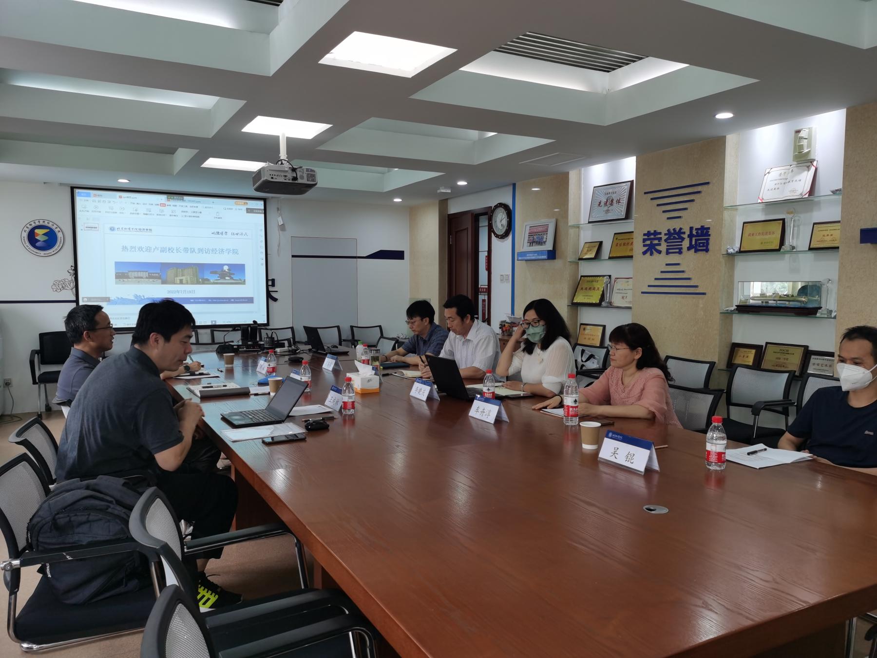 2022年7月19日,beats365官方网站副经理卢向红到beats365进行科研工作调研,随行的有公司科研处(对外合作办)处长王成林及科研处干部周敏老师。beats365经理张国胜、科研经理李晓庆、产业经济学学科负责人车卉淳教授、金融学学科负责人吴锟副教授及经理助理王海军副教授参会。
