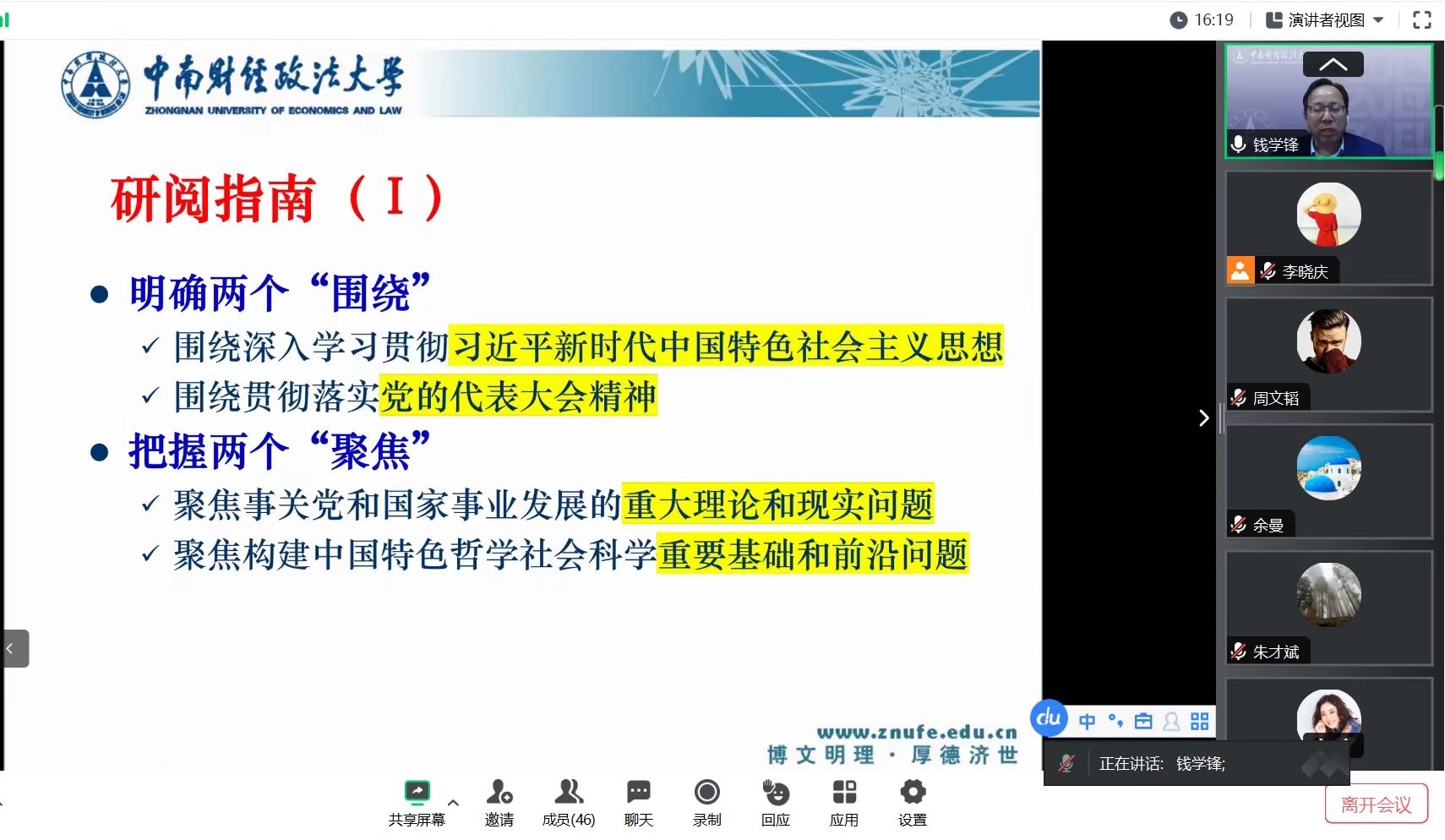钱学锋教授是中南财经政法大学教务部部长,兼任中国(湖北)自由贸易试验区研究院经理,全国高校国际贸易学科协作组青年论坛秘书长、中国世界经济学会常务理事,国家社科基金申报和评审经验丰富。钱教授以国家社科基金为讲解重点,并涉及国家自然科学基金及教育部人文社科基金等结合分享申报经验,从研阅指南、精心选题、充分论证、关注细节、持续准备五个方面分享了国家社科基金申报和评审的经验,重点回答了如何写好学术史梳理及研究动态,如何写好独到的学术价值和应用价值,如何搞准研究对象等一系列问题。