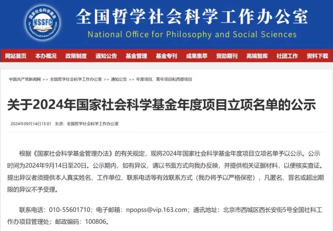 9月14日,全国哲学社会科学工作办公室官网发布《关于2024年国家社会科学基金年度项目立项名单的公示》,beats365王海军、武晓婷和周文韬三位教师获得立项资助。其中,王海军教授主持的课题获得“年度一般项目”立项,武晓婷副教授、周文韬博士主持的课题荣获“年度青年项目”立项。