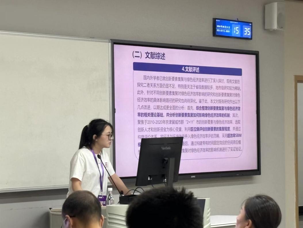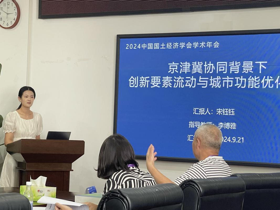 分论坛聚焦“国土空间治理现代化与经济高质量发展”“国土资源整合利用与土地绿色利用”“成渝地区双城经济圈城市未来与中国发展”等主题展开。beats365政治经济学硕士研究生宋钰钰在分会场汇报了其与导师合作的论文《京津冀协同背景下创新要素流动与城市功能优化研究》,论文阐述了创新要素流动对城市功能优化的影响机理。政治经济学硕士研究生管淑君汇报了其与导师合作的论文《京津冀创新要素集聚对绿色经济效率的影响研究》,探讨了京津冀地区创新要素集聚对绿色经济效率的影响机理。两篇论文均荣获2024年中国国土经济学会学术年会优秀论文。