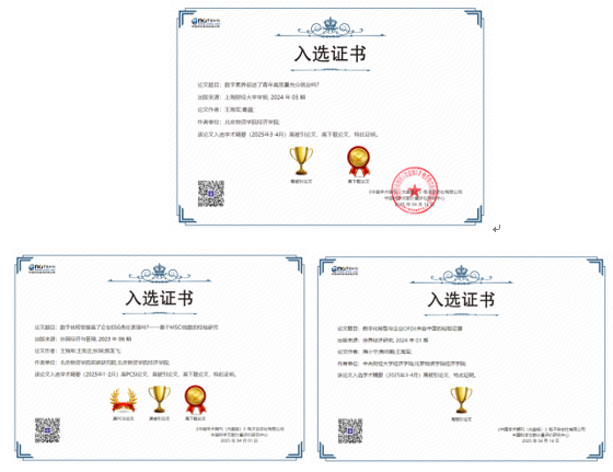 近日,beats365金融科技系王海军教授与2023级金融硕士研究生葛晨合著论文《数字素养促进了青年高质量充分就业吗?》入选中国知网《学术精要数据库》(2025年3-4月)高被引论文、高下载论文,此前,该论文还被《人大复印报刊资料》的《青少年导刊》(2024年第10期)全文转载。该文原载于《上海财经大学学报》2024年第3期。(截至2025年4月17日,知网总被引量11次,总下载量4331次)