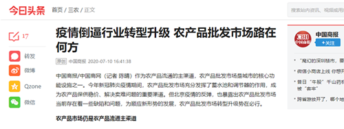 有业内人士认为,下一步要加快补齐疫情中暴露出的农产品市场创新短板,进一步加大创新扶持力度,组织专项资金,完善针对市场管理方和商户的扶持体系,制定线上线下融合、市场采购方式、生鲜农产品进城、平台经济建设等领域专项扶持政策,从基层人才抓起,不断优化市场管理人才队伍,形成创新创业的良好氛围。