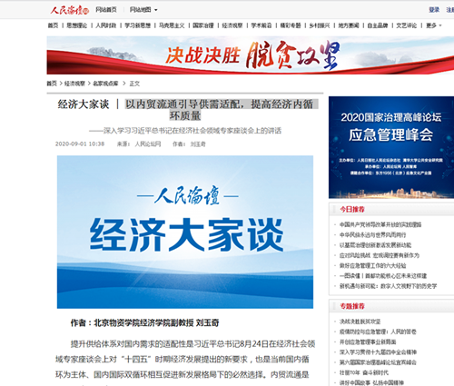 2020年9月1日,人民论坛网刊登了公司刘玉奇副教授的题为《以内贸流通引导供需适配,提高经济内循环质量》的文章,在行业内引起广泛关注。