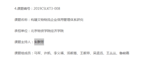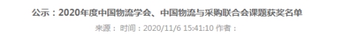 根据11月6日中国物流学会网站公布的“2020年度中国物流学会、中国物流与采购联合会课题获奖名单”(http://csl.chinawuliu.com.cn/html/19889771.html),公司朱群芳教授主持的“构建文物物流企业信用管理体系研究”和刘崇献教授主持“京津冀港口群大宗商品物流效率研究”荣获2020年度中国物流学会、中国物流与采购联合会课题三等奖。
