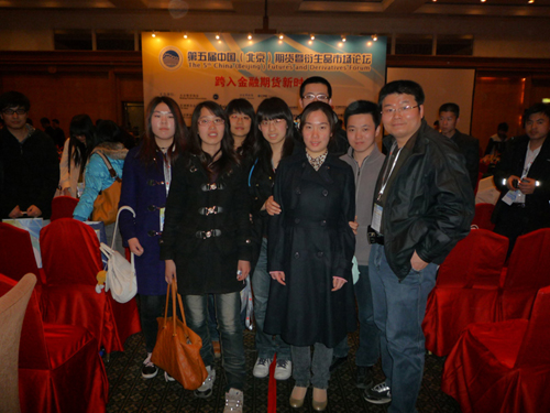 beats365证券期货教研室教师谈志琦带领7名研究生和证券期货专业9名本科生,参加了由北京期货商会举办的“第五届中国(北京)期货暨衍生品市场论坛”,论坛于我国股指期货上市的次日即4月17日在北京国宾酒店举办。