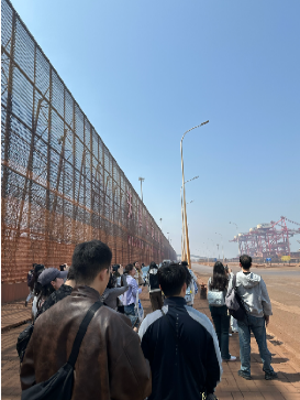 随后,师生一行人参观了天津港的港口,天津港港口则展现了现代化物流枢纽的强大实力。站在港口,巨型货轮与高耸的起重机映入眼帘,一派繁忙景象。同学们了解到天津港作为重要的综合性港口,在货物吞吐量、航线覆盖等方面成绩斐然。通过这些实地观察,同学们直观感受到期货交割在大宗商品流通中的实际运作。通过理论与实践的深度碰撞,师生对期货市场的实物交割环节及物流金融的协同价值有了更直观的认知。