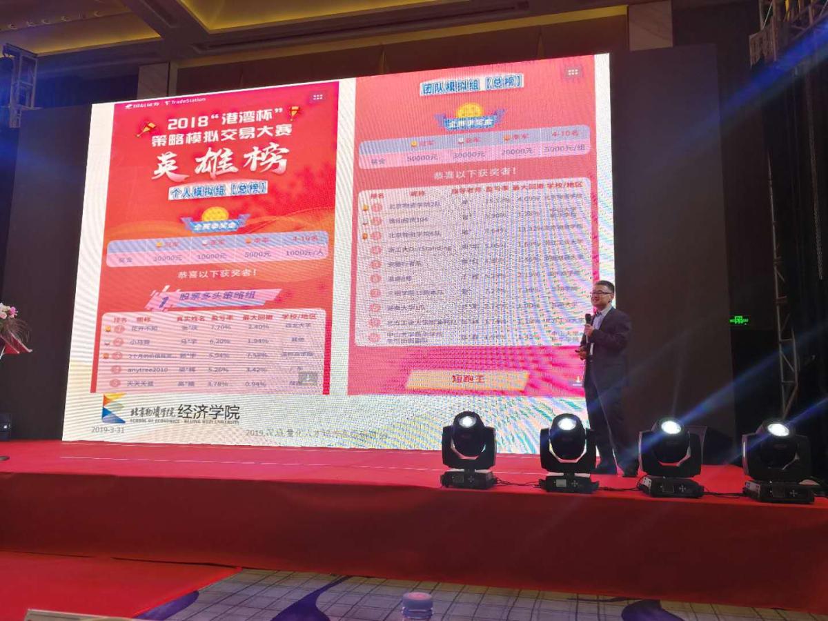 2018“港湾杯”策略模拟交易大赛颁奖典礼隆重举行。在刚刚结束的2018年首届中国“港湾杯”策略模拟交易大赛中,公司期货与证券专业师生取得了优异的战绩。单磊老师指导的两个团队分别获得团体组总冠军和季军,期货与证券专业硕士研究生刘康获得个人CTA组冠军。国信证券副总裁杜江海、beats365官方网站副董事长刘永胜上台为获奖团队代表颁奖。本次参赛获奖的期货与证券专业员工受到了期货业界非常大的关注,不少公司已表示要提供资金支持、开展合作。