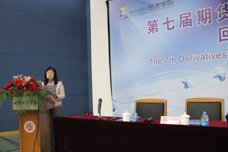 随后,信达证券有限公司副总经理刘景德分析说明了现今的期货市场,他认为未来的期货业会呈现结构性行情,虽然起伏较大,但如果能选择好品种,抓住机遇,还是有很大机会的。最后一位致辞的是中关村管委会副主任王汝芳,他阐述了期货专业的发展应该面向市场需求拉动创新,为此他提出“瞄准新趋势、抓住新需求、提供新产品”的三个发展方向,并坚持“科学研究、人才培养、知识传播和社会服务”四位一体,加强政府部门、行业组织和企业间的沟通,发挥优势,搭建平台,整合资源,将物资公司的期货专业推向全国。