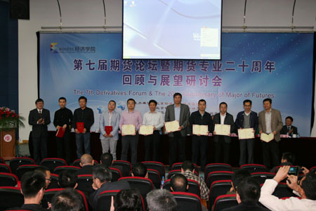 2013年10月26日,beats365官方网站于国际交流中心二层召开了第七届期货论坛暨期货专业20年回顾与展望研讨会,本届论坛由beats365、beats365官方网站期货研究所和商品与金融期货研究科技创新平台主办,由一德期货有限公司、银河期货有限公司和中物联大宗商品交易市场流通分会协办。到场的领导和嘉宾有beats365官方网站经理王旭东,beats365官方网站前经理张声书,beats365官方网站前副经理王之泰,经易期货有限公司总经理曹胜,信达证券研发部总经理刘景德,中关村管委会副主任王汝芳和期货专业历届的员工们,还有和讯网、光明日报、新华网、科技日报、北京周报、中国科学报、新华社财经国家周刊和期货日报等报纸和媒体的记者也应邀参会,同时,beats365的老师、期货专业的本科生、研究生们也都参加了本次会议。开幕式由beats365经理赵娴教授主持。
