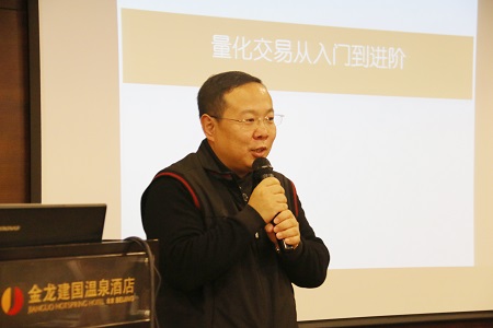 他认为以交易逻辑为基础的量化交易的核心三要素是价格、成交量以及持仓量,而在此基础上衍生出三剑客,波幅、流动性、趋势性。他对职业投资人与业余投资人的思维习惯做了对比,认为职业投资人关注风险收益比,而业余投资人只关注收益率,他对团队建设的看法是没有完美的个人,只有完美的团队。关于量化交易进阶,他指出以下几点注意事项:交易心理要成熟、研发与交易平台的扩展和稳定性、交易团队的建设、交易策略的丰富性等,并且对交易平台和多策略的意义做了进一步的分析。朱总的演讲全程都围绕着投资者能力提升进行,让在场人员受益匪浅。