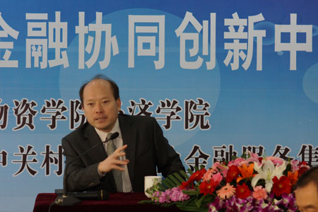 首先,由中关村发展集团副总经理张兴胜博士作了题为“科技金融:理论前沿与发展展望”的报告。张经理从为什么要研究科技金融问题、科技金融服务的特殊性或主要困难、科技金融在中关村的实践及他的几点相关思考这样四个方面来与大家进行交流和探讨。他认为科技金融是国家经济发展和示范区建设的新需要,是推动金融深化和金融创新发展的新话题,是推动今天理论创新发展的新契机,他认为研究科技金融的特殊性在于科技金融服务具有复杂性、综合性、创新性,并从科技金融服务在中关村的实践示范提出科技金融需要多样化的服务、工具、服务文化及理论研究,最后,他还谈及了中关村科技金融服务研究的现状及对科技金融人才未来发展的思考。