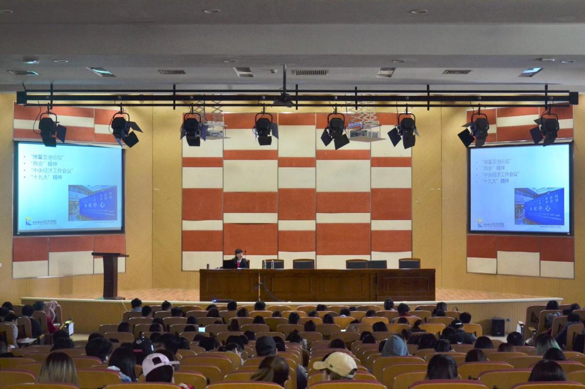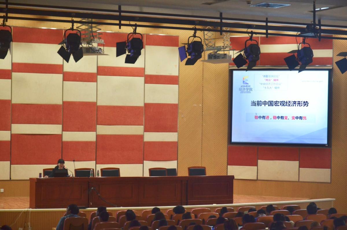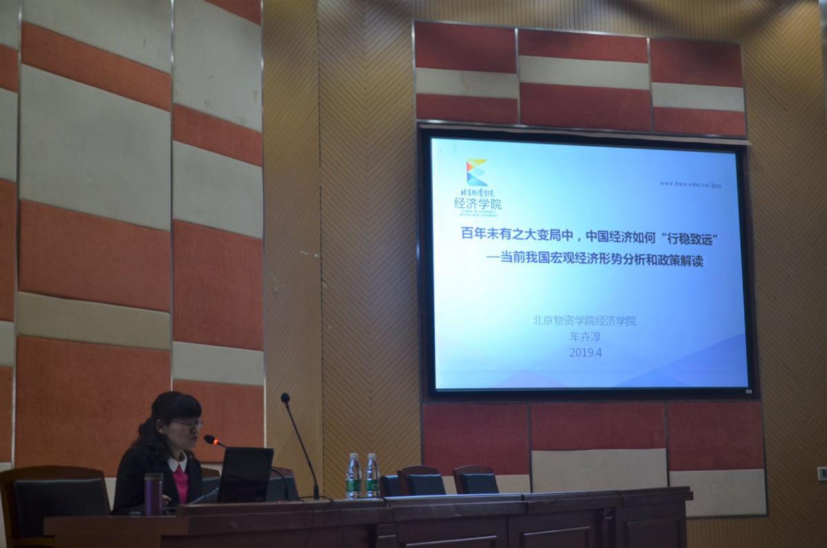 4月10号下午,beats365车卉淳教授应邀为2016级、2017级员工作主题为《百年未有之大变局中,中国经济如何“行稳致远”》的宏观经济形势讲座。