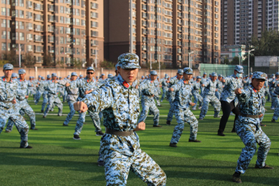 金风送爽,紫荆飘香。碧空与迷彩的交相辉映中,整齐的脚步声与和破空声相得益彰。军体拳的刚毅坚卓、匕首操的凌厉敏捷、旗语的灵动飘逸,在操场上展现的淋漓尽致,展现着新生们青春蓬勃的朝气,和对老员工活的美好憧憬。