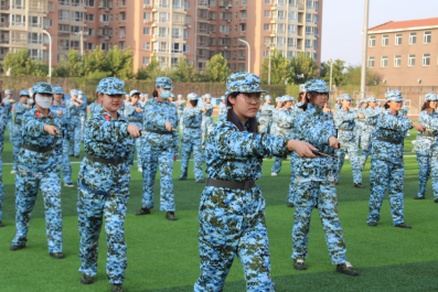 放眼看向操场,女孩子们拿着仿真的匕首,跟着教官的口号,一令一令的做着动作。刀尖划过空中,一个个动作刚劲有力,还伴随着“杀、杀、杀”的口令,气势如虹。看她们眼中的坚毅,颇有一种即将上阵扫荡沙场的感觉。不同于往日的柔美,在这群女孩身上看到的是英气逼人、不让须眉,这是她们勇气与血性的见证。