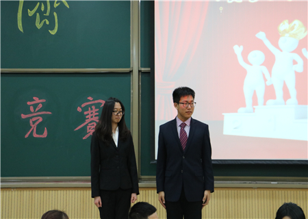 本次经济知识竞赛一共分为五个环节,分别是“初露锋芒”、“进言献策”、“幸运之星”、“唇枪舌辩”和“背水一战”。在简单的选手介绍和小组宣言后,每组的一号选手和二号选手分别进行第一、第二环节比拼,为自己的小组争取更多的比分。第一环节的经济知识题目回答考验了选手们的基本功底,选手们准备充分,比分悬殊不大;第二环节中各小组分别提出一个热点经济问题并进行分析,“房产税是否合理”“共享经济分析”“顺丰上市背后”等话题分享展示出了同学们的深入思考,评委老师们专业的提问和点评更是考验了选手们对经济问题的思考和理解。两个环节结束后,分数出现悬殊,比赛也已经进入到白热化阶段。第四环节“唇枪舌辩”更是激烈。在这一环节中,选手们通过对“当今城市公交定价应该/不应该高于运营成本”这一辩题展开辩论,两方面进行辩论尽情阐发自己的观点,立论、自由辩论、结辩,经济学知识在辩论中进一步碰撞,引发全场观众们的思考。随后,评委齐子翔老师针对辩论话题和选手的论点进行了深入细致的点评,阐述了城市公共交通体系的运营模式, 也让场下观众得到不少启发。在第五环节“背水一战”后,比赛决出了名次,最终获奖情况:一等奖:赵袭明,张露馨。二等奖:岳小丁、陈炳旭,付俊宁、谭纯。三等奖:李铭玖、王东,朱鑫茹、张明远 ,李阳、尹玉婷。优秀奖:王莉、赖嘉豪,董昊民、谢菲。