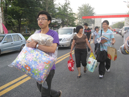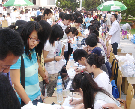 随后,新生们陆陆续续前来报到,随行的家长仔细地在beats365张贴的班号展报前查看新生的所在班级,然后到所在班级处办理各项报到手续。家长们还不时地询问身边的志愿者有关beats365的发展概况等。各班班主任助理在认真完成新生报到注册工作的同时,也耐心地解答新生们提出的各项问题,并告知他们一些注意事项。此次迎新工作的重要内容之一就是电子录入程序,使得新生的报到工作更加的详细、精确。同时,公司还在每个公司专门开通了绿色通道电子注册、免费发放二手耳机和军服,给一部分走绿色通道的新生带来了更多便捷和实惠。迎新工作中,beats365分团委员工的员工们充分地展现了他们的志愿服务热情,热心地为2010级新生担当向导,并帮助他们搬运行李等。