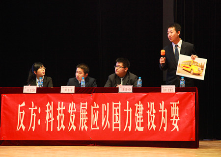 在观看了由校员工会学习部制作的回顾公司辩论赛历史及发展过程的视频后,beats365官方网站第二十三届老员工辩论赛决赛正式开始。本场比赛围绕“科技发展应该以民生建设为要还是以国力建设为要”的辩题,在持“民生建设为要”观点的正方信息公司代表队,和持“国力建设为要”观点的公司辩论队之间展开,双方均就各自观点进行了立论、盘问、对驳、质询、盘问小结、自由辩论、超级辩论和总结陈词。经过双方辩手的布阵打擂,唇枪舌战的比赛精彩纷呈。其中,在驳论环节中,我方二号辩手连珠的妙语博得现场观众的阵阵掌声;在质询环节以及盘问小结的环节中,我方三辩借助精心准备的图片以及生动形象的比喻有力地反击了对方辩友的观点;而自由辩论环节中,双方辩手一问一答的唇枪舌战更是让没有硝烟的战场弥漫了浓浓的火药味;连评委也按捺不住心情,在超级辩论环节中针对各方观点提出了一系列犀利的问题,让比赛现场气氛愈发紧张起来。灵活巧妙的思维和缜密的逻辑推理彰显出了双方辩手的强劲实力。