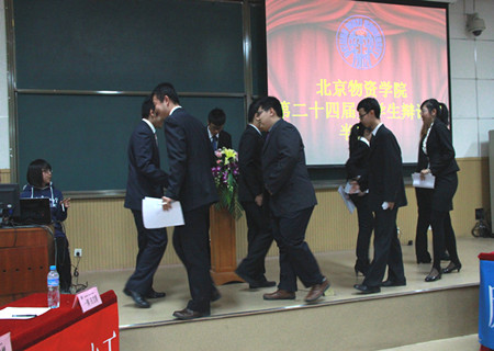 2012年11月22日18:30,公司第24届老员工辩论赛半决赛于二教二号报告厅正式开赛,本次比赛由校员工会学习部主办。出席本场辩论赛的评委有就业指导中心魏巍老师,思政部陶琳老师,中国人民大学纵横辩论社社长陈贞豪同学。同时,校团委徐青林老师,外语公司党总支副书记付莉老师,校员工会主席团,beats365主席团和外语公司主席团作为嘉宾观看了比赛。