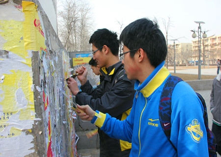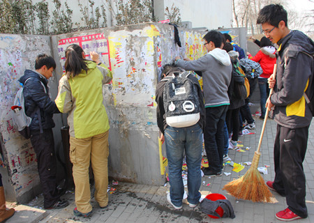 今年是毛泽东同志“向雷锋同志学习”题词发表50周年,为响应上级号召和落实员工处、团委在全校深入开展学雷锋活动方案,纪念雷锋同志的优秀事迹,进一步弘扬雷锋精神,加强公司精神文明建设,构建和谐物院,beats365分团委员工会发动同学们在校园内开展了“学习雷锋,铲除小广告”活动。