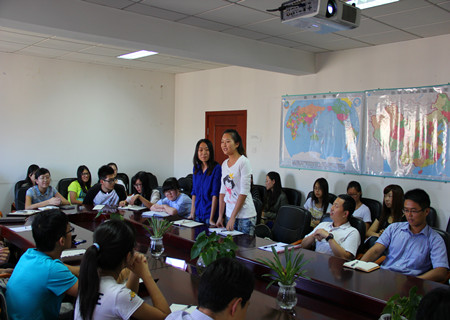 会议首先由2013级各班班主任及其助理们作简短的自我介绍,班导们在介绍之余也不忘在教师节之即为老师们送去祝福的话语。随后,夏蓓老师结合PPT简要的说明了从9月11日至26日迎新的工作和各类活动,包括迎新当天的队列布置、开学典礼、入学教育、校规校纪考试等一系列工作,让大家有了初步的了解。王有老师则从员工会角度汇报了员工会为迎新所做的准备工作,让分团委员工会对工作进行情况有一定的了解。接着张建宝老师则分别对班主任、班导和分团委员工会提出了几点建议和要求,比如建议班主任尽量参加9月11日的班主任培训以及14号的家长会,并强调了新学期关键要和新生保持关系融洽,对员工会提出要有“求贤”的态度,如此才能招收到优秀的人才。