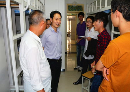2013年9月14日上午11点,为了更好地了解新生们刚入学的适应情况,beats365的领导和老师们来到新生宿舍与新生和家长们进行沟通交流。参与本次走访宿舍的有beats365经理赵娴老师、党总支书记胡伟老师、党总支副书记张建宝老师、专职辅导员韩春丽老师、分团委书记王有老师和专职辅导员赵文老师。与此同时,分团委员工会主席团成员也加入到了本次走访。