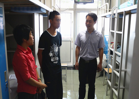 在走访过程中,赵娴经理一行来到了女生宿舍楼,并在1,2两层的各个宿舍进行了调查走访。走访过程中,得到了员工和家长们的热情接待,员工们因为经理和老师的莅临感到十分高兴,家长们也与赵经理和老师们亲切的握手交谈,场面欢乐而融洽。在与员工和家长们的谈话中,赵经理始终不忘告诫家长们要给孩子传播正能量以及多与老师和班主任进行沟通,以促进员工的健康与全面的发展,除此之外,赵经理与两位老师还询问了新生上学的交通状况、宿舍是否舒适和一些家庭状况等生活上的问题,家长们在回答的同时也对公司领导的关心和员工会人员对他们的帮助表示了感谢。另一方面,胡伟书记一行则在同一时间来到男生宿舍进行走访,他们同样询问了家长和员工们的住行情况,并热心的回答了家长们提出的种种问题,以及告诉家长和员工们要注意翻看新生手册,尽快的融入到大学一年级的学习生活中去。
