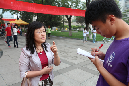 在迎新活动开始之即,我们有幸采访到了赵娴经理,在采访中,赵经理表示在总体上对本次迎新工作感到很满意,在不足方面,赵经理指出每年需要用的展板、条幅一类物件要规范一下,尽量节省开支,但也要有一定的亮点,争取做到年年有新意。在“对新生有何期望”这一问题的回答中,赵经理强调了今年beats365进行的是专业招生,不同于往年,新生的专业性和目的性更强,所以希望他们能学好各自的专业知识,并且遵规守矩,做个合格的物院学子。最后,赵经理对新学期分团委员工会的工作提出了宝贵的建议,她认为分团委员工会应该起到一个“上传下达”的作用,同时建议员工会成员多与外界进行沟通交流,以增长见识。采访结束后,随着新生的大量到来,迎新活动也进入了高潮时期,班主任和班导们一起为新生答疑解惑,告诉新生们一些刚入学的简单事项,与新生们相互交流,场面十分热闹。员工会的工作人员们也热心地为员工和家长们拎包、带路,边走边介绍beats365的一些概况及学习生活的经验,让家长和员工们对公司有一定的了解。迎新进行到一半,校领导团也来到了beats365迎新处察看迎新状况,询问新生报到情况,并对迎新工作作出指示。