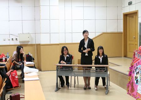 接下来,王老师对分团委员工会做了简单的介绍,他从“大家对大学员工会的看法?”这一问题开始,说明了员工会自我管理、寓教于乐、展示自己等特点,并告诉新生们员工会工作不会与学习冲突。随后,第十六届分团委员工会主席团携各部门与期货协会、员工交流会、辩论队一起依次对自己的部门进行了介绍,包括宣传部的个人精彩演讲、体育部的诙谐短片、辩论队的小型辩论赛,他们通过精彩的演讲和视频设计为新生们展示了一个不同凡响的老员工活。