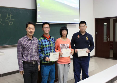 最后由公司党总支书记胡伟老师为此次新生暑期读书报告交流会做出了总结。首先他表明了此次读书报告会开得很成功,内容充实,并指出读书报告交流会的目的是激发同学们的学习热情,拓宽了同学们的知识面,而且为同学们提供了一个锻炼自己、鞭策自己、展示自我的平台。最后他还表示希望读书交流会以后可以多办,同学们之间要多交流和相互学习。这次读书交流会在胡伟老师为每位获奖同学颁发奖状后及全体同学和老师留影的愉悦气氛中结束。
