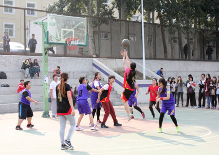 10月17日中午12点30,beats365官方网站2013体育文化节系列活动之“腾龙飞凤”杯篮球赛女篮部分比赛正式打响。女篮部分共有6支参赛队伍,本次比赛由beats365女子篮球队与信息公司女子篮球队展开较量。