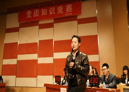 11月19日晚6点,由公司分团委员工会组织部主办的第十二届党团知识竞赛于第二教学楼第三报告厅举办。出席此次竞赛的领导和老师有公司党总支书记胡伟、党总支副书记张建宝老师、专职辅导员韩春丽老师和2013级新生专职辅导员夏蓓老师,2013级全体员工观看了此次竞赛。