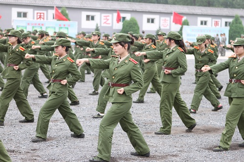在短暂的午休之后,同学们抖擞精神,再次投身于下午的训练之中。公司女生连队开始学习第一套军体拳。在训练过程中,公司女生快速学习完全部十二式军体拳,并展现出巾帼不让须眉的风貌,将军体拳演练得十分出色。通过学习军体拳,增强了同学们的魄力,健全了同学们的体魄。