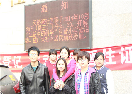 10月29日下午2:00,beats365青年志愿者协会的志愿者们来到天桥湾社区,进行了一次志愿活动。这是一次科普实验活动,主题为“生活中的科学”,天桥湾社区居民参与了此次活动。