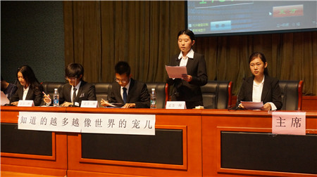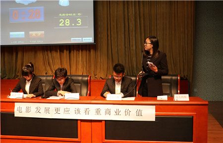 第二场辩论的正反两方是由经济一班和国贸一班。正方从电影定义入手,反方从商业价值来保护立论。随之而来的自由辩论环节使得双方情绪迅速升温,双方的言辞犀利,气势如虹,都表现了双方辩友的能力。经济一班勇夺桂冠,正方四辩与反方二辩也荣获最佳辩手。