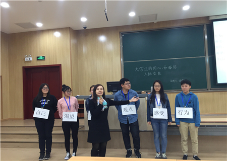 赵军燕老师是首都师范大学心理素质教育与咨询中心主任,中国科公司心理研究所发展与教育心理学博士,国家二级心理咨询师等。在本次讲座中,赵老师用引导式结合情景模拟的讲授方式,引导同学们从自我认识出发、理解自己与他人及人与人之间的关系,让同学们受益匪浅。