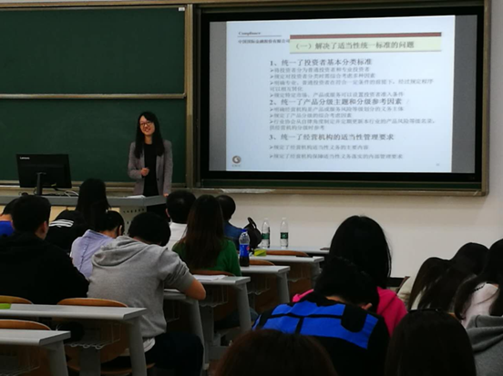 随后,高天竹律师向同学们解读证监会最新出台的《证券期货投资者适当性管理办法》,并详细介绍了投资者适当性管理的基本理念、证券经营机构和客户在适当性管理中的责任义务以及投资者适当性管理在投资者保护中的意义等内容。