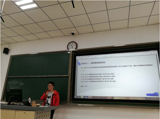 在上午的专业知识复习讲解中,一德期货期权部分析师刘晓艺讲解了“中金所杯”国债期货复习要点及方法简析,参考题库国债期货部分例题进行详细分析。接着,一德期货期权部分析师曹柏杨讲解了股指期货复习要点及方法简析,并参考题库股指期货部分例题解析。