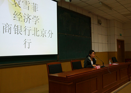 本次大会分两部分进行,第一部分是张建宝老师对13届毕业生的就业指导,包括以下内容,分别是经院学子的目标行业、企业岗位,报考研究生、社区助理、老员工村官,公务员、预征兵得基本信息,毕业生实习方面的状况、方向等,毕业生签约离校等方面的情况。第二部分是08级就业成功的代表员工的经验讲谈,其中有来自08级金融专业的符雨思,现就业于中国企业咨询有限公司;08级经济系的袁雪菲,现就业于工商银行北京分行;08级金融系的李文凯,现就业于中国光大银行北京分行;08级期货专业的张祺,现就业于万达期货有限公司。在交流过程中,他们分别就毕业前的准备工作,网申,实习,考试,外企找人,上网咨询出国等方面的内容进行了讲解和分享。最后,他们还以自己的亲身经历为例给大家分享了很多就业途中的小窍门,使大家深受启发。