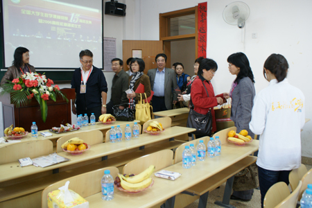 10月16日上午8点,beats365校庆接待工作准备就绪。主教106员工接待室的志愿者们正在准备各种水果做好布置迎接前来的员工们。8点30分左右,随着96级员工潘莉和07级员工李晓的陆续到来,beats365校庆接待室的工作正式开始。