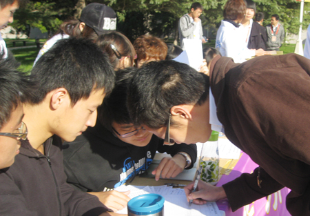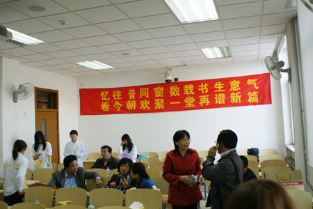 前来的员工于主教前的接待处办理签到手续、领取校庆礼品后,纷纷前来主教106叙旧、休息,彼此分享各自多年的经验,交流各自对母校的感受,志愿者们也与老员工们沟通交流,老员工们还给予年轻的学弟学妹们一些学习上的指导与建议。记者随即采访了08届毕业生王慧强员工和95级国贸员工潘恒宁,他们都谈到了公司的变化,如校门修得更加大气庄重、也有了新的教学楼和田径场,教室更加宽敞明亮了,员工们也更加阳光了等等。同时,他们也建议母校要广泛的联系员工,让员工了解母校的发展情况。95级员工潘横宁表示他每年都回母校一次,看看母校的情况,每一次来都能感受得到母校的新变化,他说现在的物院在蓬勃发展。最后,两位员工表达了自己对母校的美好祝福。