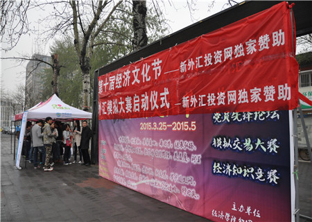 2015年3月 31日中午12:00“第十届经济文化节@外汇模拟交易大赛”在公司三食堂门口正式启动。尽管当天下着蒙蒙细雨,却丝毫不减组织者和参赛者的热情。十一点之前,公司beats365外联部的成员们提前到三食堂门口,积极准备外汇模拟大赛启动仪式。