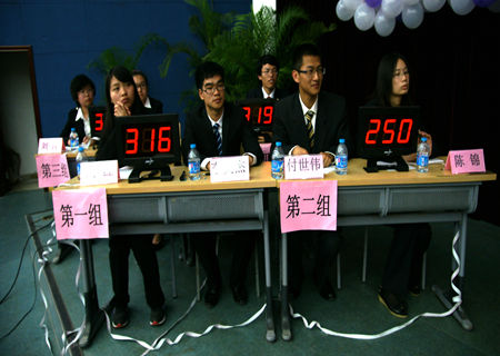 紧张的分数统计之后,本场比赛的获奖情况隆重揭晓。其中大一新生汤晓晴同学获得优秀新生奖,第一和第二组获得最佳优秀奖,第三、第四和第六组获得三等奖,第七和第五组获得二等奖,本次大赛一等奖由第八组获得。