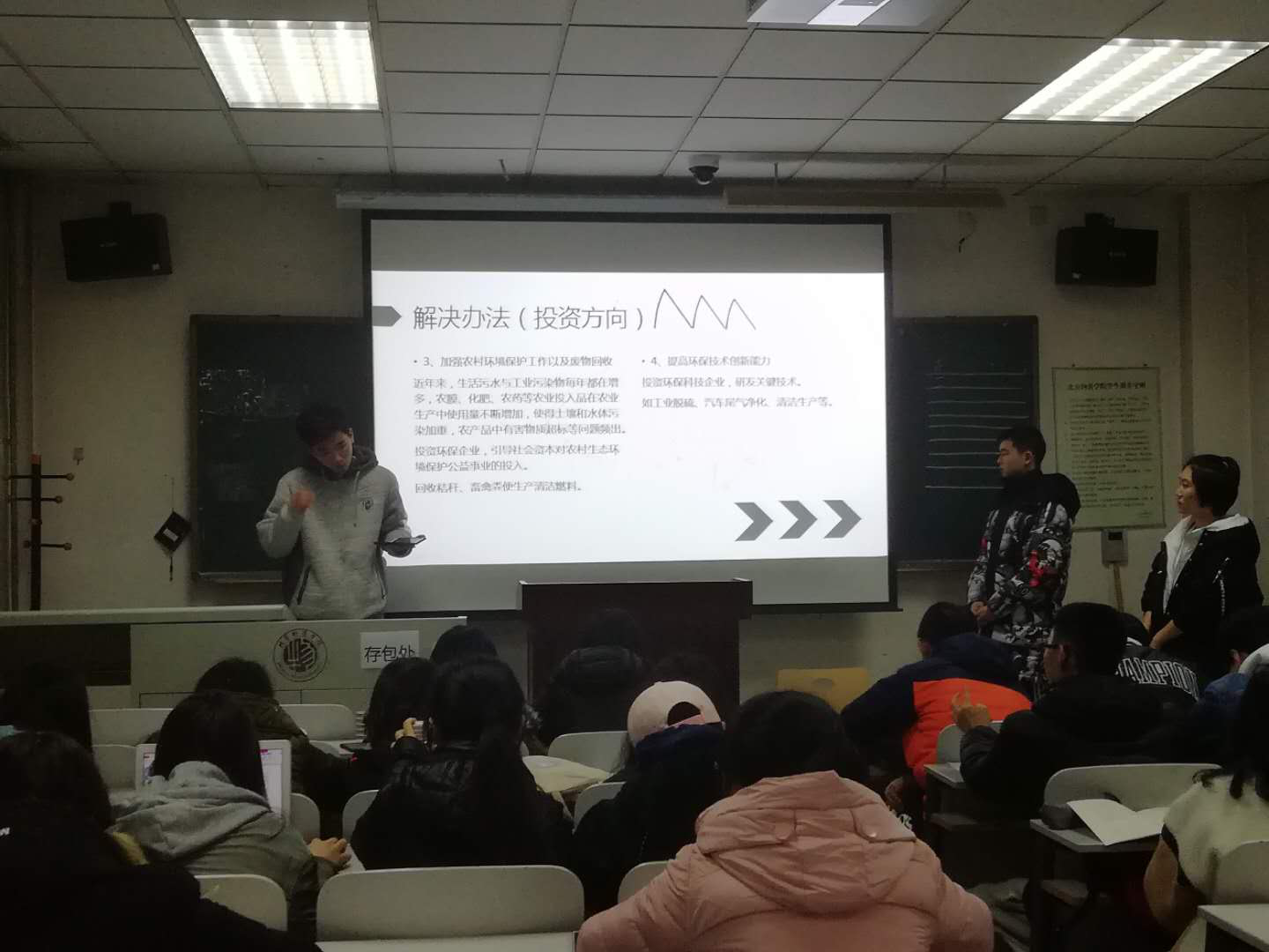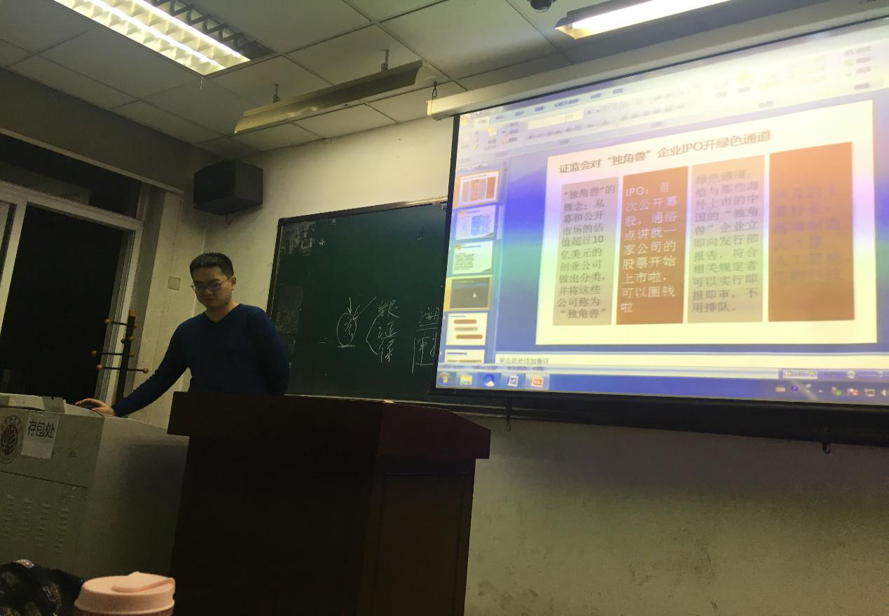 在“模拟两会”的分会场现场,金融二班负责人和班长组织各班成员有序到场并且进行PPT展示,每个小组都有着不同角度的议案,大家都按次序发表对小组内的议案看法。