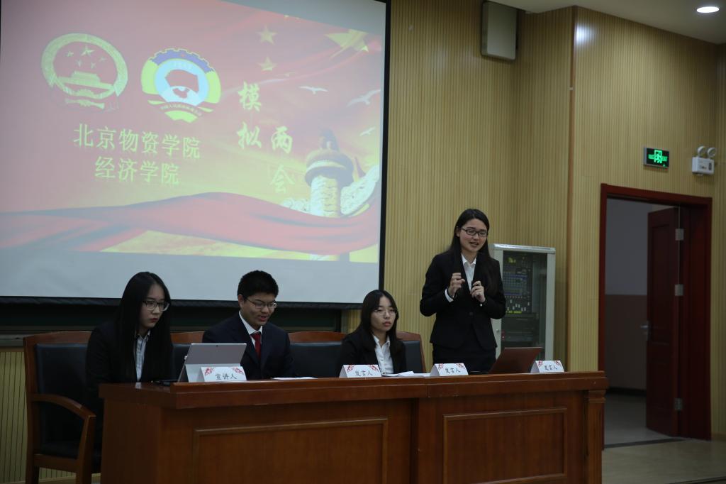 在雄伟的国歌声中,本次大会拉开了序幕。会议共有三个环节,首先,由各系宣讲人宣讲本系议案;第二环节,由国务院成员向该系发言人提出一个热点问题,陈述方作答;第三环节,由群体代表向台上发言人提出本群体的三个问题。由发言人进行现场解答。在整个比赛的过程中,各系选手据理力争表,现出了对于当下经济领域时事的理解和关注,贯彻了两会精神。