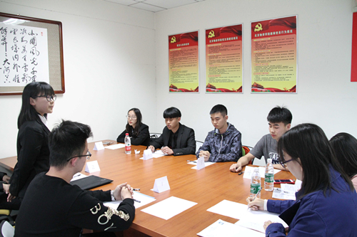 4月18日,模拟面试大赛决赛在二教309隆重举行。经过初赛的选拔,有六名选手进入了决赛,分别是:曹琳雅、方劼、赖嘉豪、张家莹、张继祎、周利。胡彦峰担任主持。公司邀请到了人力资源专家和优秀员工此次担任评委,包括:10级学姐黄靖净,现在丰田汽车金融任审核专员;10级学姐崔文悦,现任平安银行风险核审专员并考取中央民族大学MBA;10级学长张紫珩,现就职于中国人民财产保险总公司。另外担任评委的还有特邀嘉宾张秀云讲师,任智联招聘人力资源高级管理培训师、资深职业顾问,以及公司党委副书记张建宝老师。