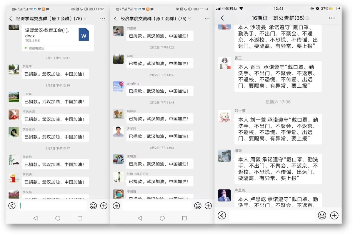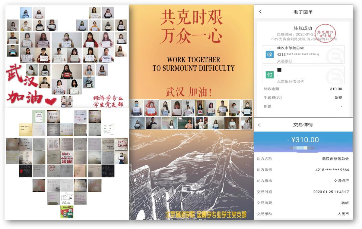 在公司党委的领导号召下,全体师生党员均主动遵守公司、公司相关制度要求、服从组织安排,以实际行动亮身份、树形象、做典范,在防控疫情战斗中充分展现了党员的先进性。公司下辖8个基层党支部成员纷纷带头自觉开展防控工作,从自我做起,少出门、不返校,勤洗手、戴口罩,不信谣、不传谣,积极在师生中传递正能量。同时,不少党员同志在此期间敢担当有作为,积极配合公司各项防疫工作,争当疫情防控“小助手”,师生里的贴心人,主动建立“一帮一”帮扶机制,关心关爱同事、同学的身心状况;通过微信朋友圈、微博、喜马拉雅等媒体渠道声援武汉,声援祖国。积极组织在线交流研讨活动,做到放假不停学;了解掌握疫情动态,学习防护知识,主动向同事、同学传播权威政策信息;积极协助公司开展舆情应对工作,营造良好的公司舆论氛围,引导亲友、同事、同学增强战胜疫情的决心与信心;与班主任、导师、辅导员等公司工作人员保持密切联系,发现异常及时汇报;踊跃捐款,辐射身边群体踊跃献爱心。