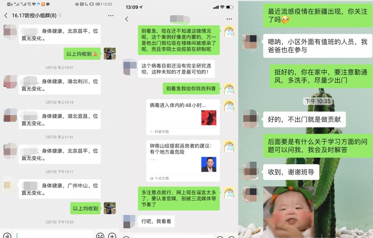隔离不隔心,防疫不防爱。针对家庭经济困难、留校员工、重点疫区人员及心理关注人员等重点群体公司党委按群体类别有针对性开展专项工作。针对目前尚处疫区及因疫情关系导致家庭经济困难的特殊群体,公司依托党支部和年级管理模式,设专人每日定点关心联络,并建立单独团支部开展团学活动丰富其精神生活。同时公司依托首都开设的心理咨询在线平台,在师生中普及特殊时期心理疏导咨询渠道并重点关注人群重点联络,准确把握每名对象真实动向。针对公司寒假留校员工,公司党委副书记任管理组长,定期安排值班老师上门检查员工住宿卫生和消毒情况,关心留宿员工身心健康状况及可能存在的实际困难,第一时间反馈相关部门协助解决。