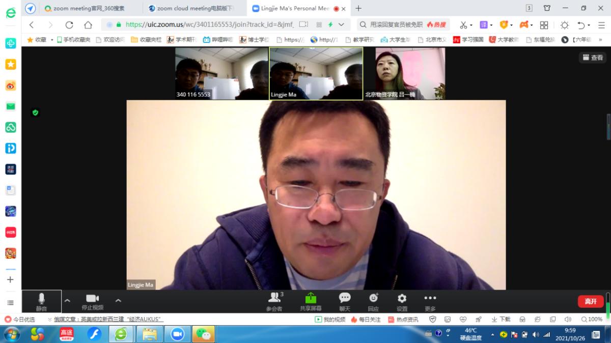 2021年10月26日上午,beats365与伊利诺伊大学芝加哥分校在线上举行合作洽谈会。伊利诺伊芝加哥分校商公司副经理马令杰、国际合作与交流处副处长吕一楠、beats365副经理原玲玲、beats365国际交流负责人郭龙飞参加了会议。会议由国际合作与交流处副处长吕一楠主持。