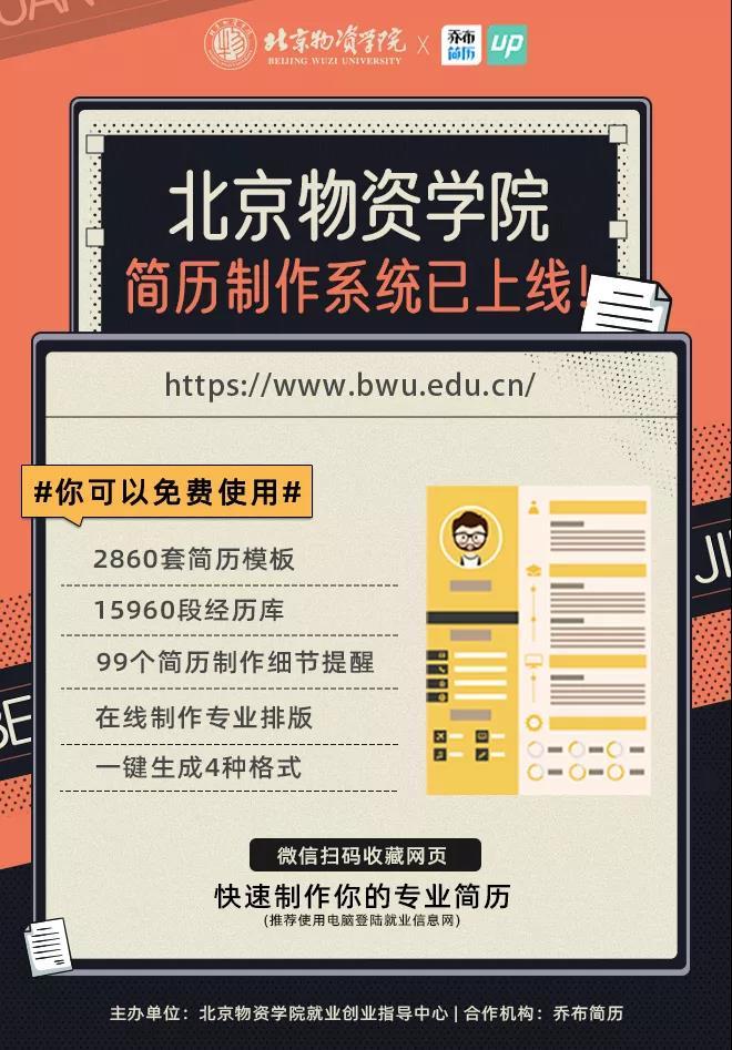 别着急,beats365官方网站就业创业指导中心近期与专业简历网站乔布简历达成系统对接合作!即使你是没有实习经历的小白,也能快速制作出一份优质简历!
