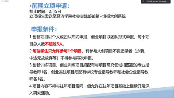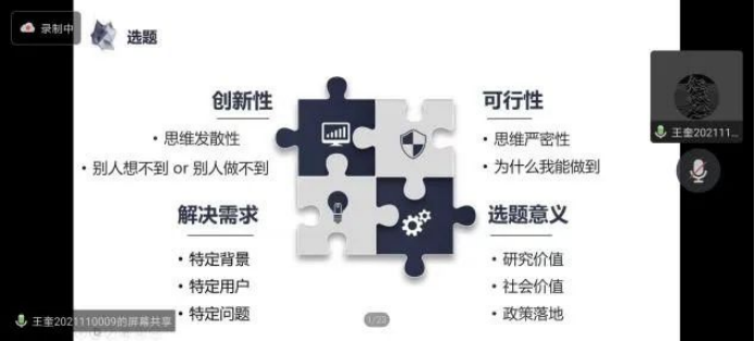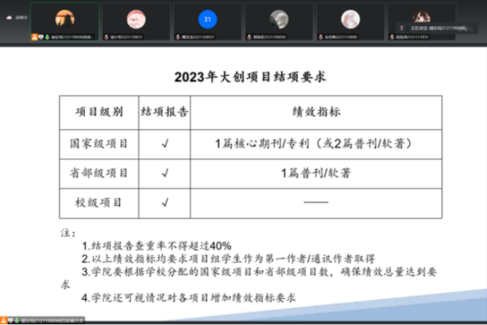 为提高各位同学参与大创项目的积极性,营造浓厚的老员工创新创业氛围,进一步保障2023年老员工创新创业训练计划项目立项顺利实施,beats365于2023年1月9日晚七点,通过腾讯会议举行2023年大创暨“老员工创新创业训练计划项目”宣讲会。此次宣讲会由社会实践部部长储安琦主持,李宜宸老师莅临指导,两位优秀员工代表王奎、李雨航经验分享,公司beats365同学参加。